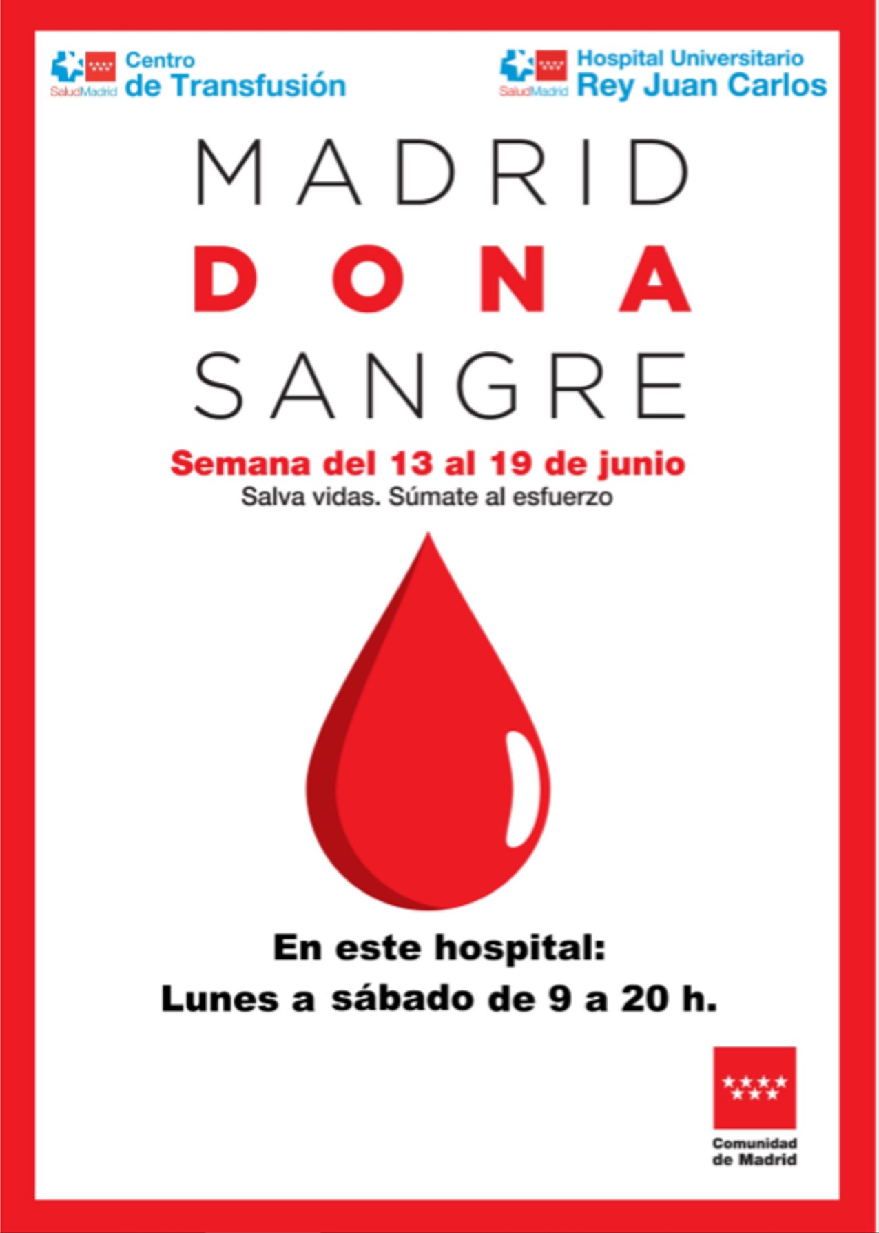 El Hospital Universitario Rey Juan Carlos se suma a la Semana de la Donación de Sangre “Madrid Dona Sangre. Salva vidas. Súmate al esfuerzo”
