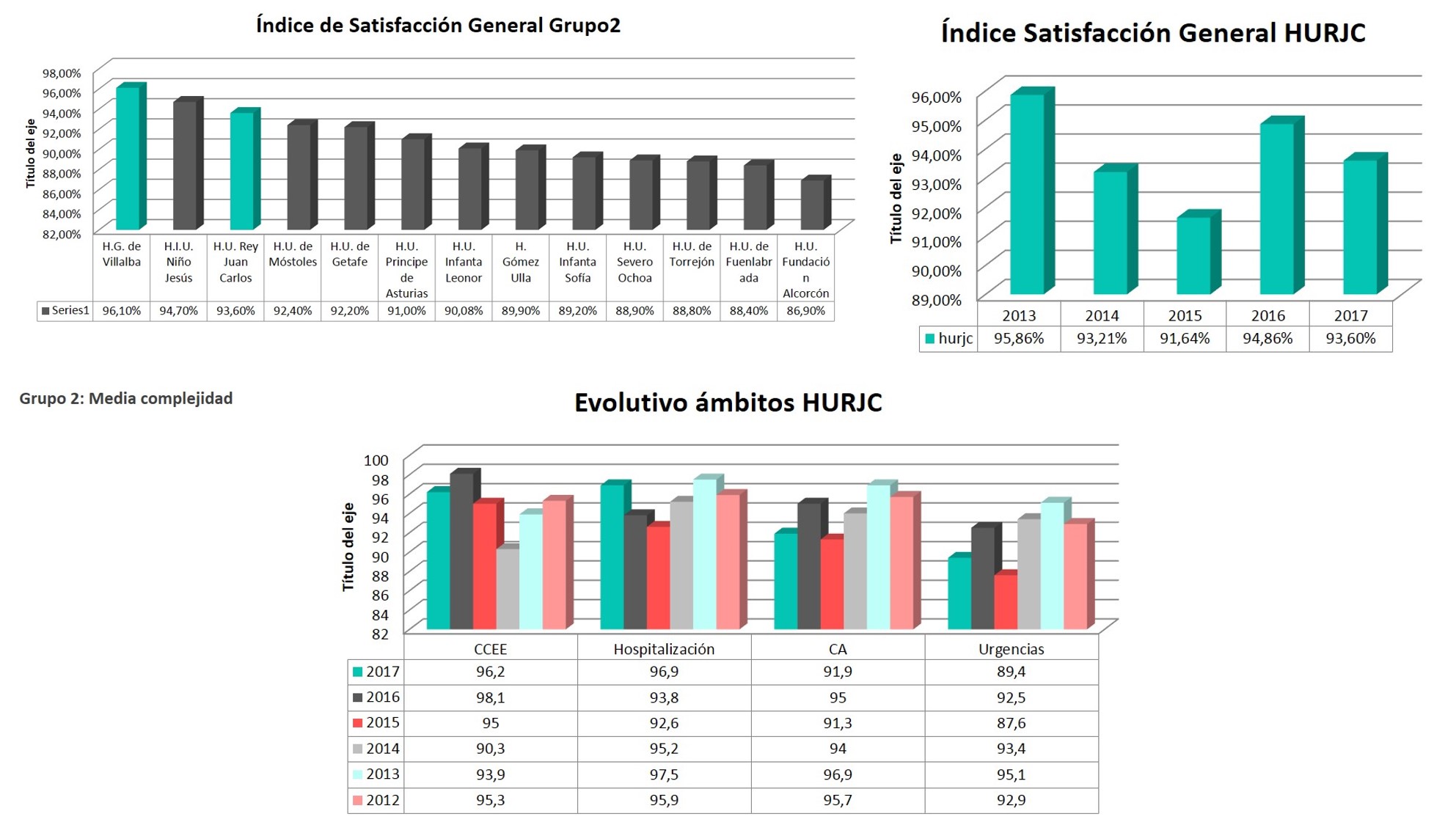 En cuanto a los índices de satisfacción con la humanización de la asistencia sanitaria ofrecida, el Hospital Universitario Rey Juan Carlos ha obtenido valoraciones muy positivas, tanto con respecto a su grupo como al global de hospitales madrileños, en los cuatro ámbitos analizados, obteniendo puntuaciones de entre el 86,90 por ciento en las Urgencias al 93,63 por ciento en las Consultas Externas, el 88,85 por ciento con el que los pacientes madrileños valoran la Cirugía Ambulatoria del centro y el 92,94 por ciento que le otorgan a su servicio de Hospitalización.