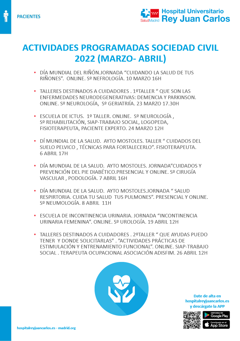 Calendario de Agenda de eventos correspondiente a abril 2022